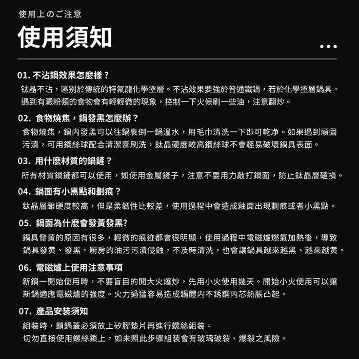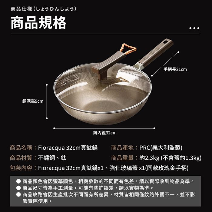 | 內容物 | (鈦炒鍋+強化玻璃蓋)x5 |