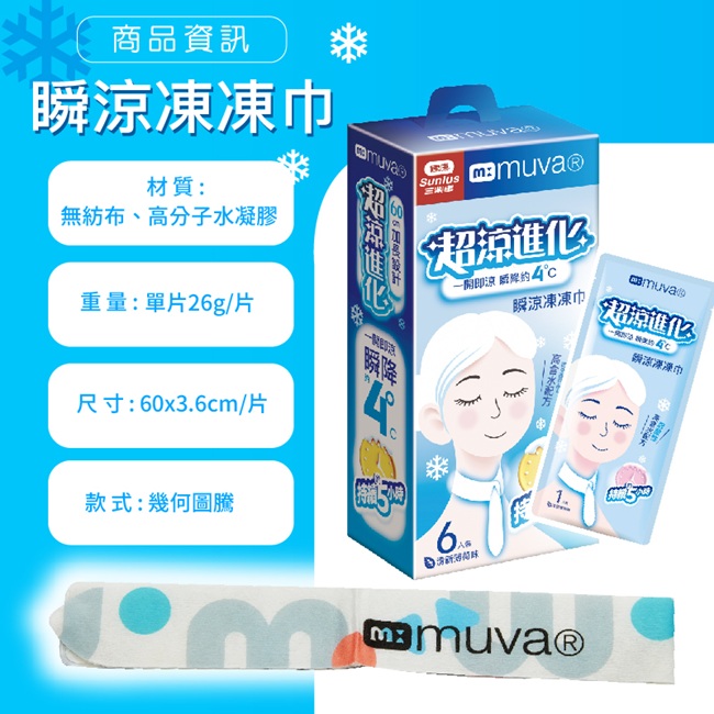 | 商品名稱 | 【muva】瞬涼凍凍巾-4°C / 三盒組(共18片) |