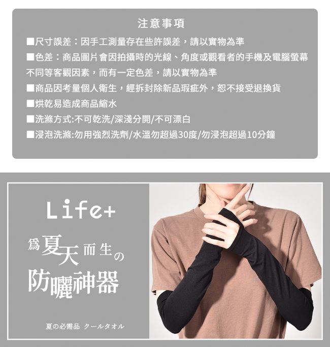 | 【商品名稱】 | 【Life+】MIT超彈力冰絲涼感防曬袖套 - 6色可選 [2雙組] |