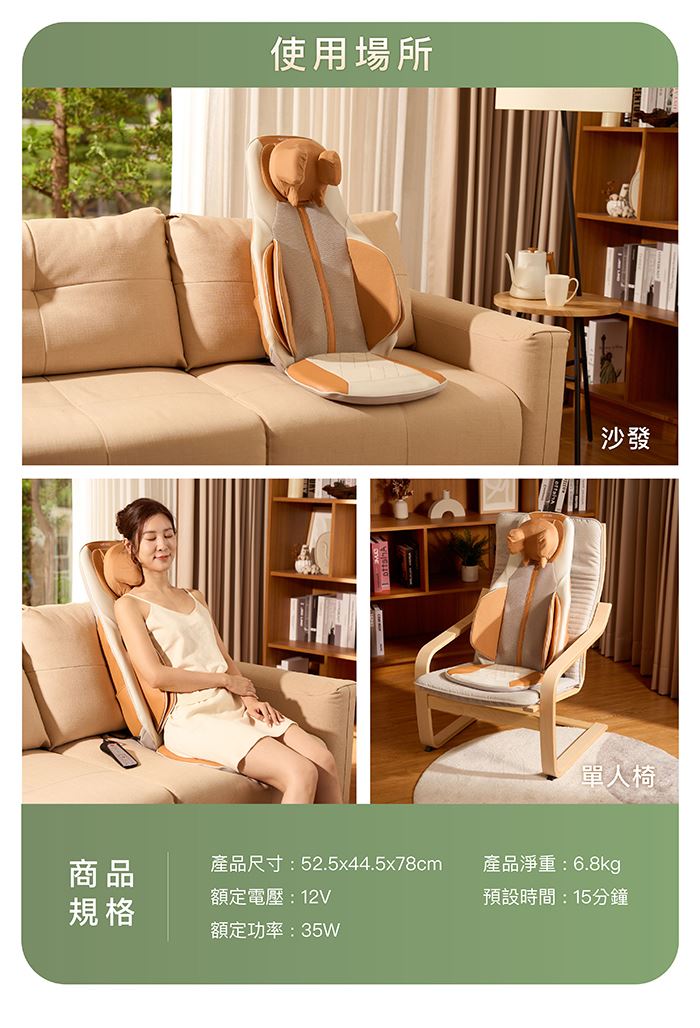 腰背捶打指揉壓 x 獨立溫熱滾輪