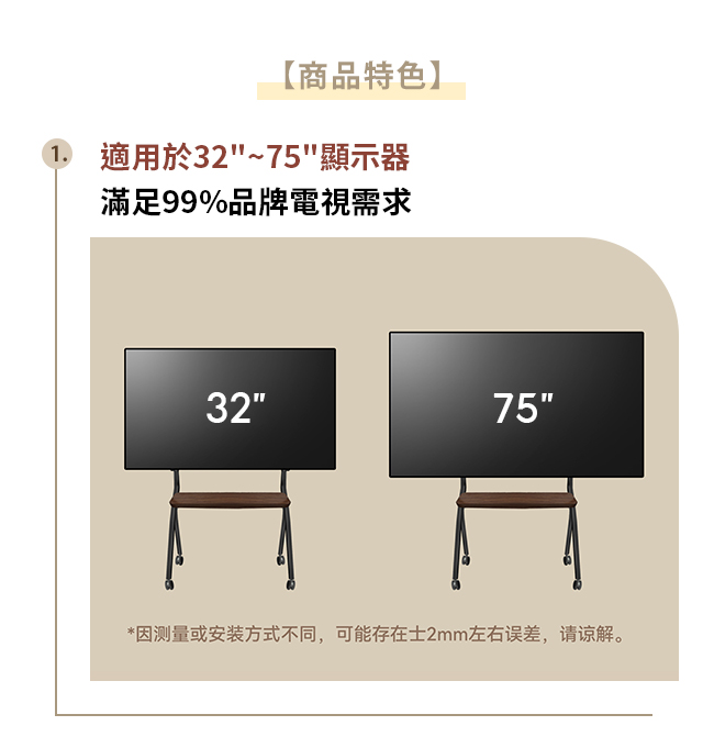 適用於32"~75"顯示器,滿足99%品牌電視需求