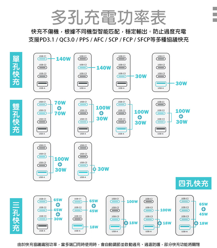 | 支援快充協議 | PD3.1/QC3.0/PPS/AFC/FCP/SCP/SFCP |