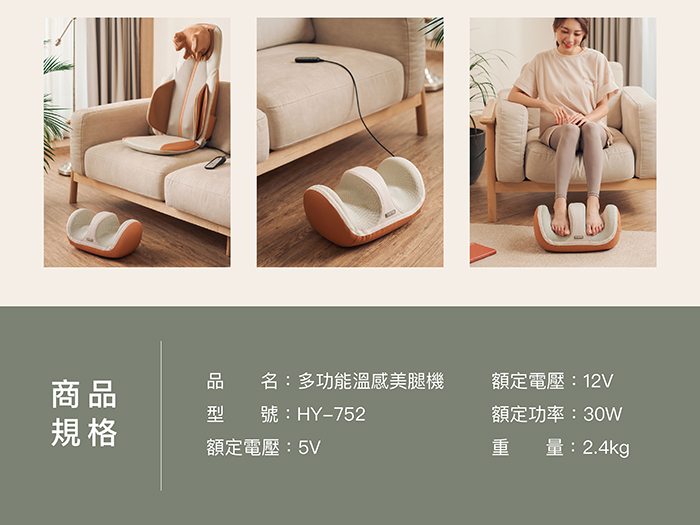 | 【商品名稱或型號】 | 【輝葉】多功能溫感美腿機(HY-752) |