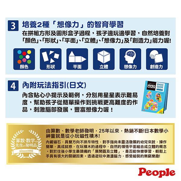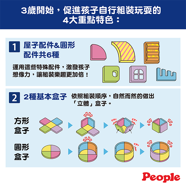People益智磁性積木是一款能伴隨孩子成長的智育玩具,具磁石特性,1歲起的幼兒即能輕鬆組裝拆卸。