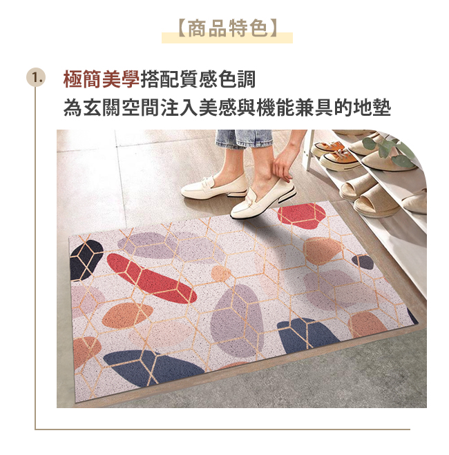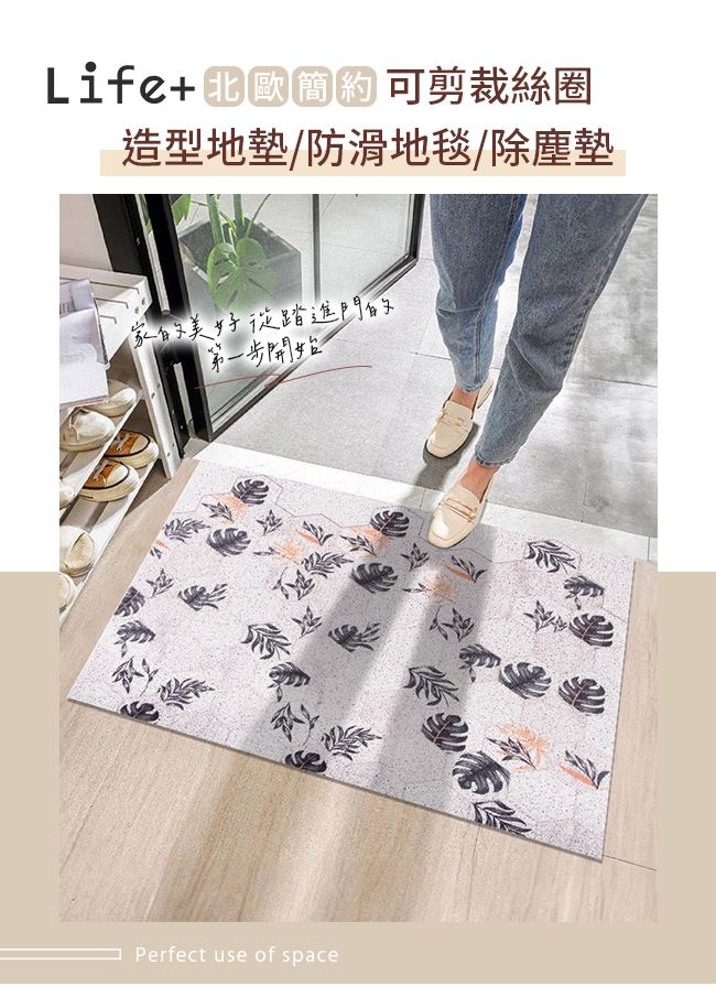 | 商品名稱 | Life+ 北歐簡約可剪裁絲圈造形地墊玄關大門口客廳防滑地墊地毯/除塵地墊60x90cm_5款任選 |