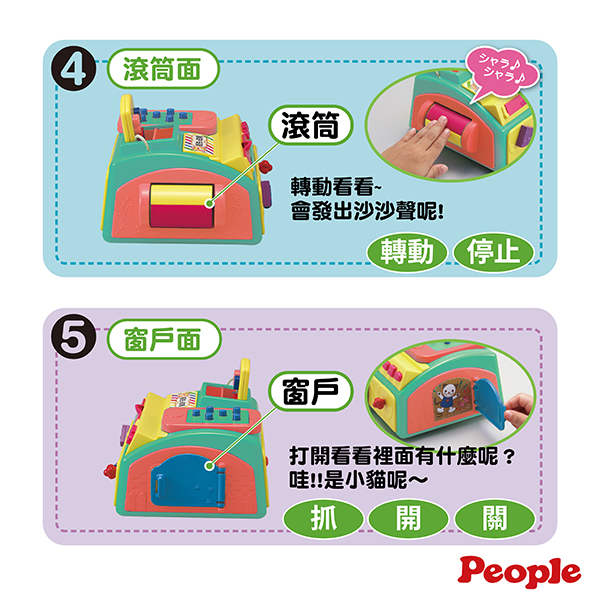 專為7個月以上寶寶設計,集合了淘氣寶寶愛玩的生活用品,