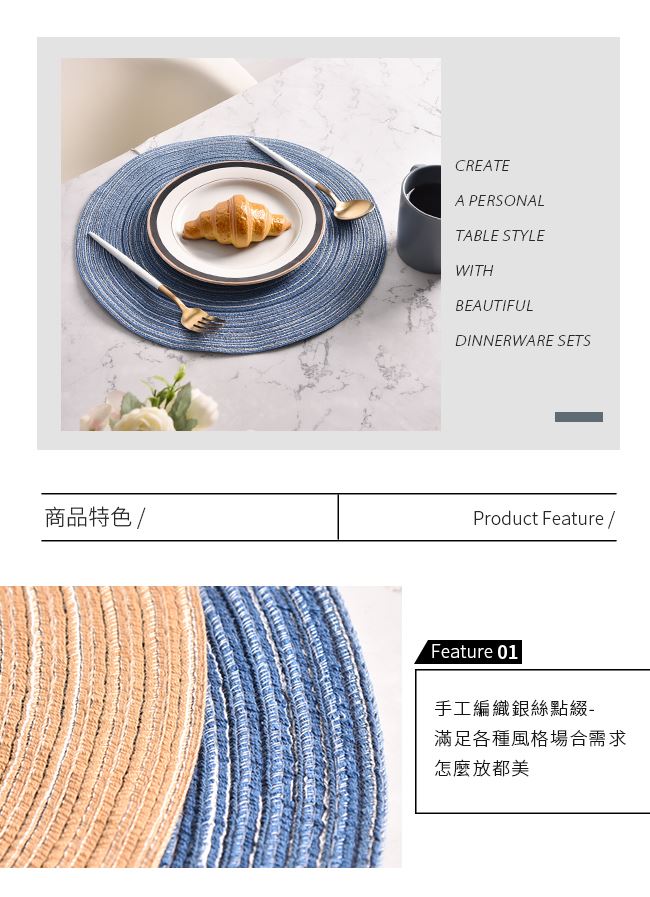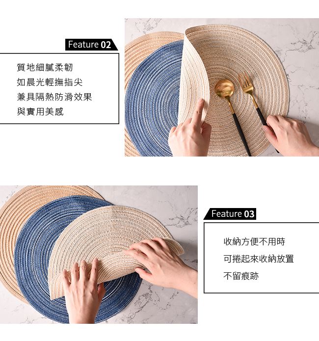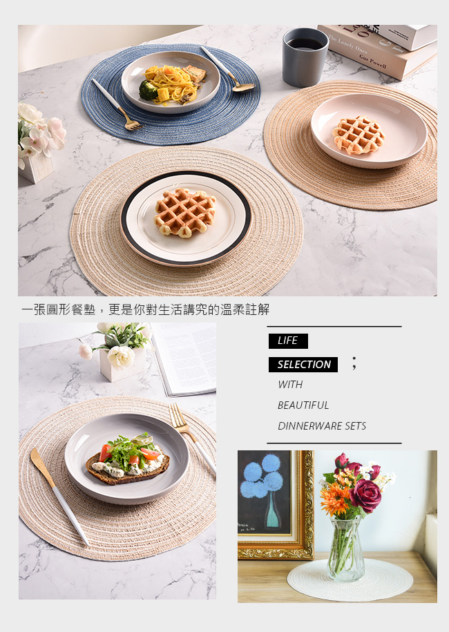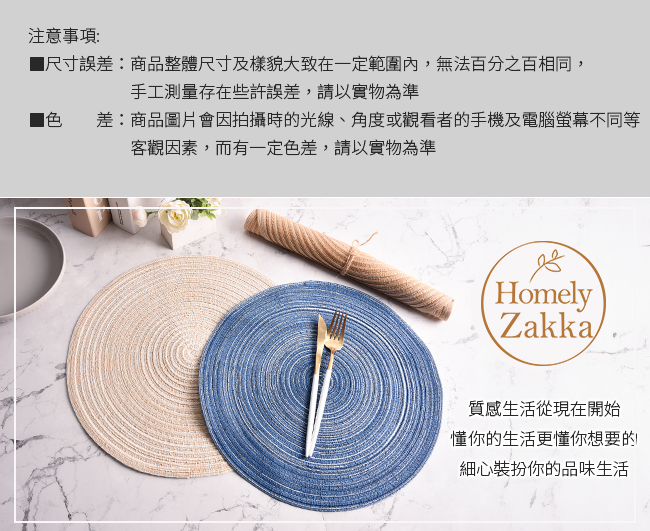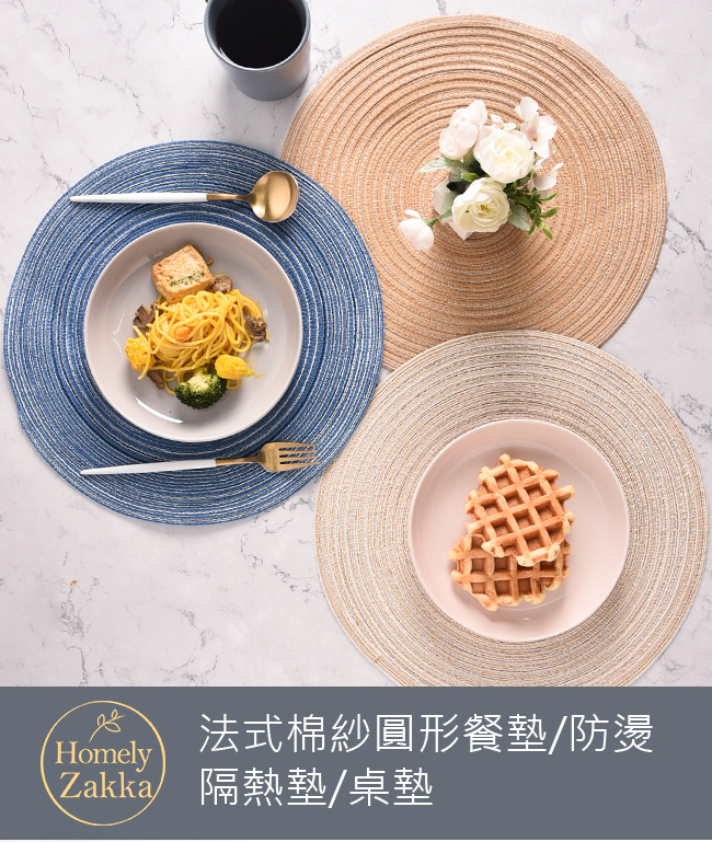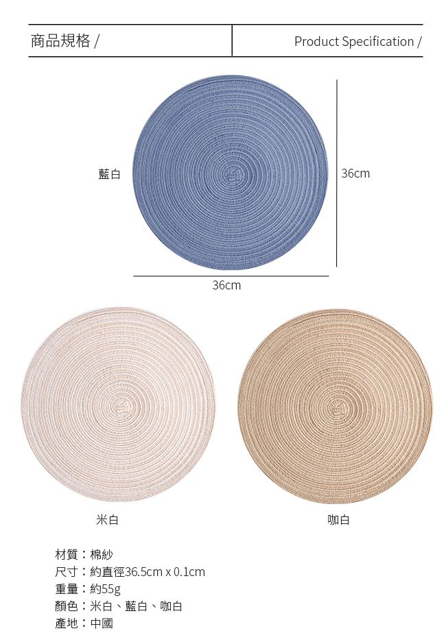 | 商品名稱 | 【Homely Zakka】法式棉紗圓形餐墊/防燙隔熱墊/桌墊_3色一組(米白+藍白+咖白) |