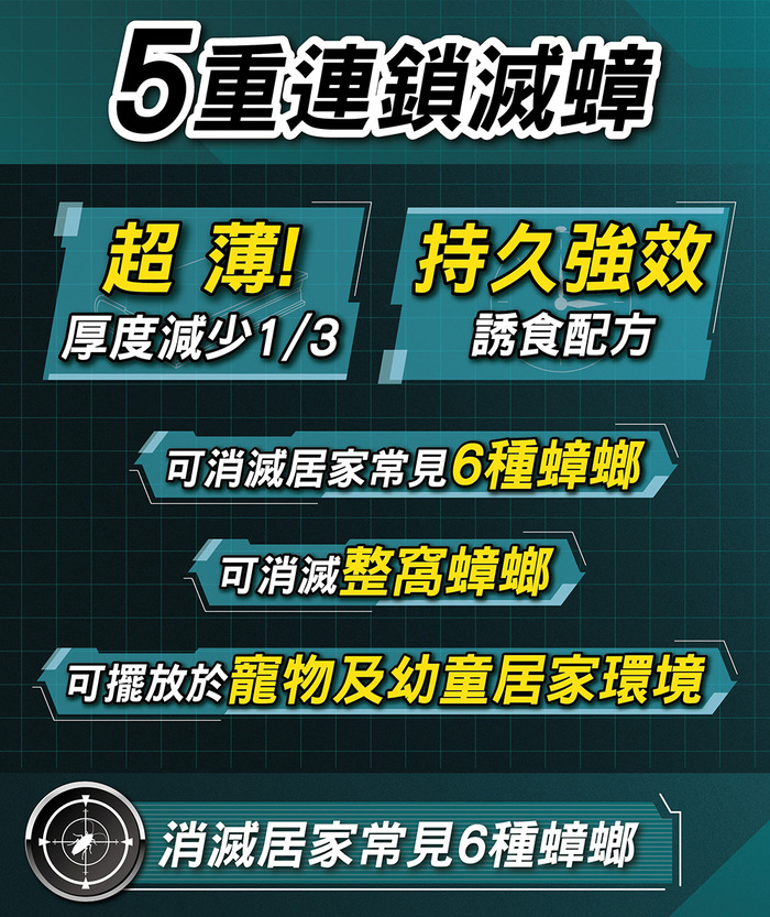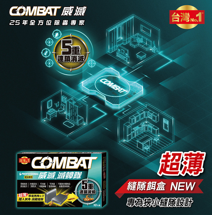 | 商品名稱 | Combat威滅 滅蟑隊 5重連鎖_縫隙適用 1g* 10入x3 |