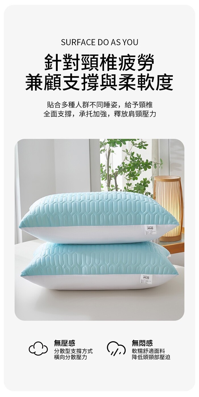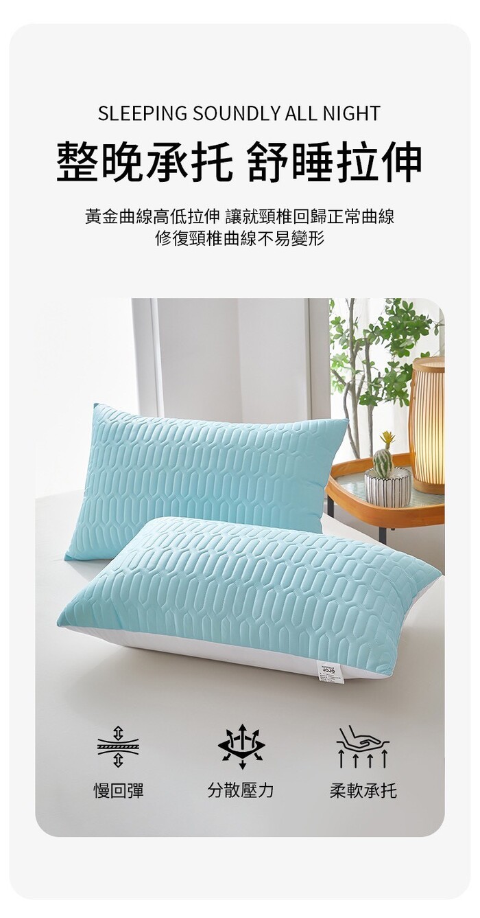 軟而不塌舒緩頸椎,不易塌陷的特性確保持久支撐