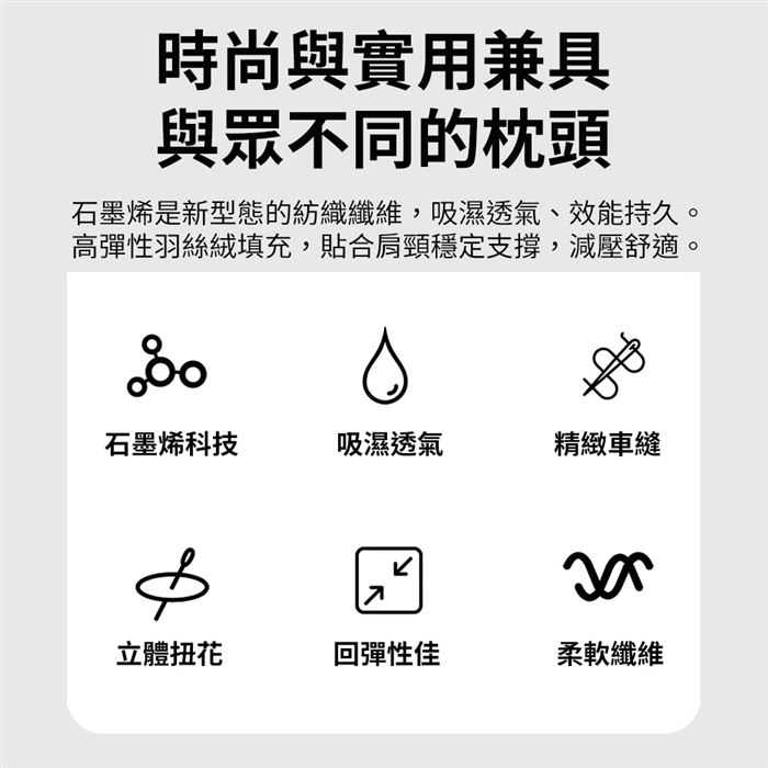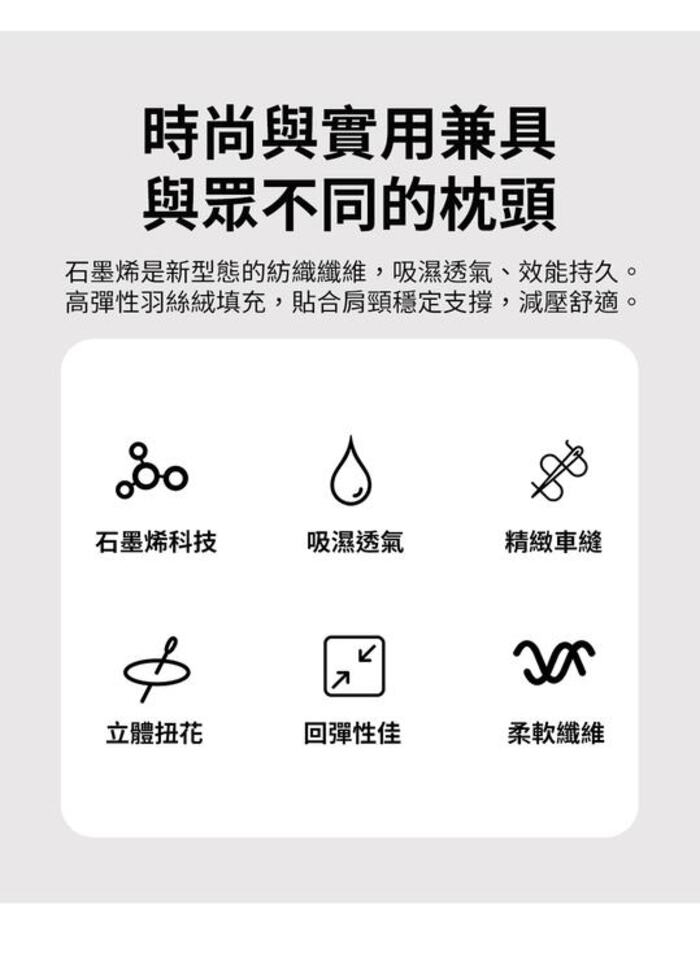 | 商品名稱 | 【NINO1881】買1送1 五星級石墨烯扭花立體枕 |