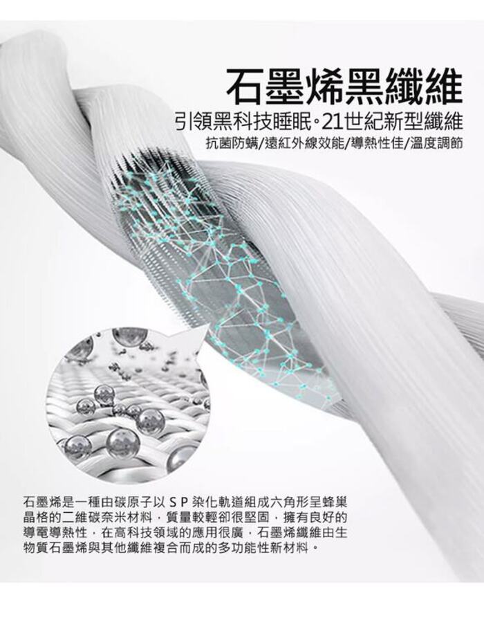 | 成分 | 表布 100%聚酯纖維 填充物 100%聚酯纖維(內含石墨烯) |