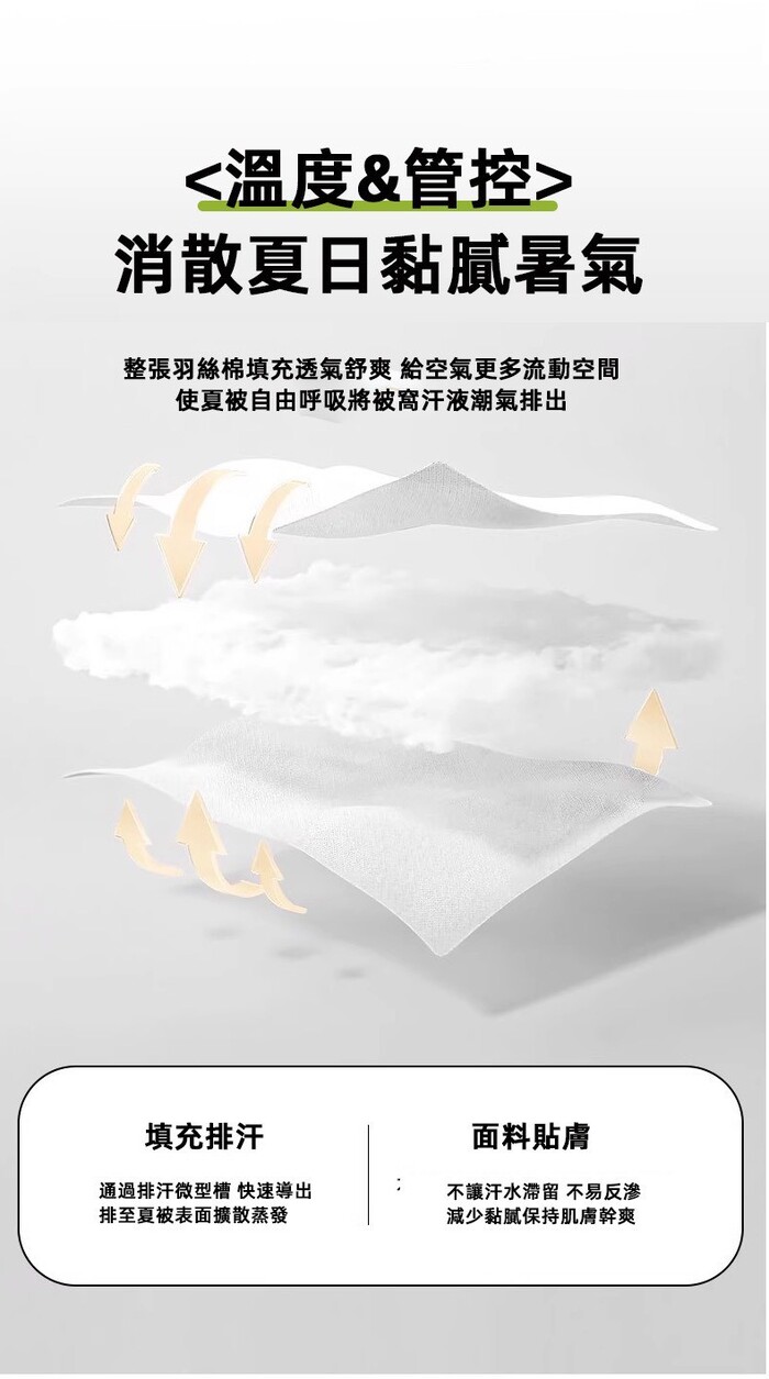 | 用途 | 親膚涼爽觸感,睡眠不悶熱,一頁舒適好眠 |