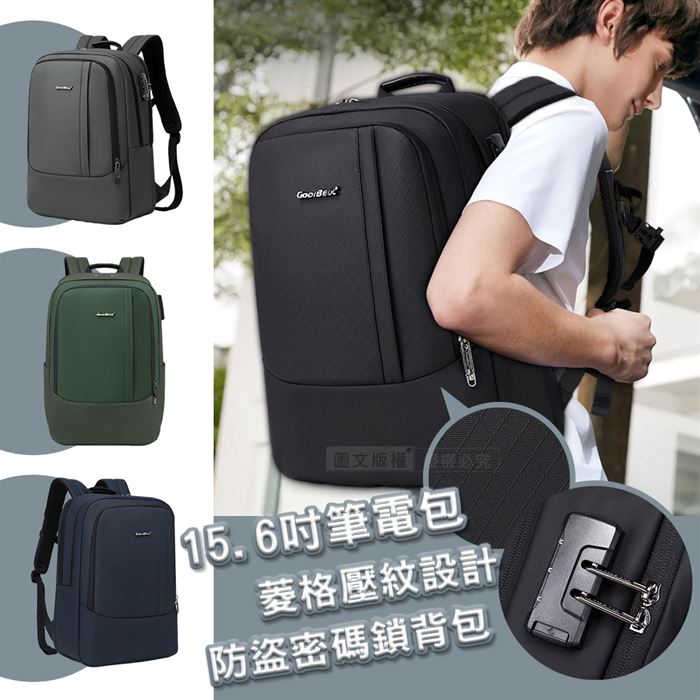 | 【商品名稱或型號】 | 【CoolBell】15.6吋菱格壓紋 防盜密碼鎖筆電後背包 筆電包 - 4色可選 |