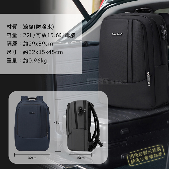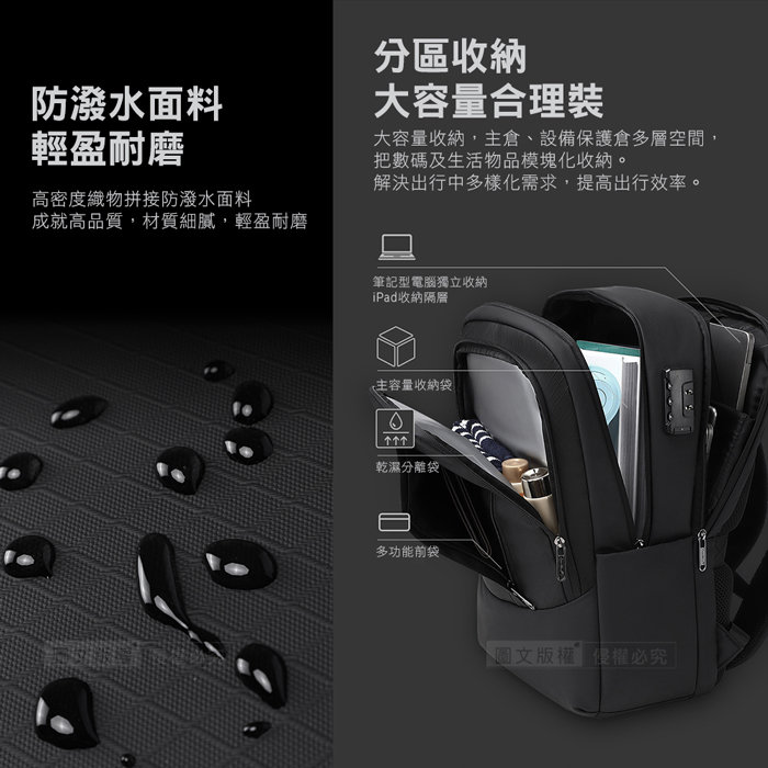 防盜密碼鎖×防震電腦隔層×防潑水耐磨