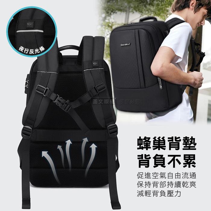 蜂巢背墊舒適背負,多層分區收納