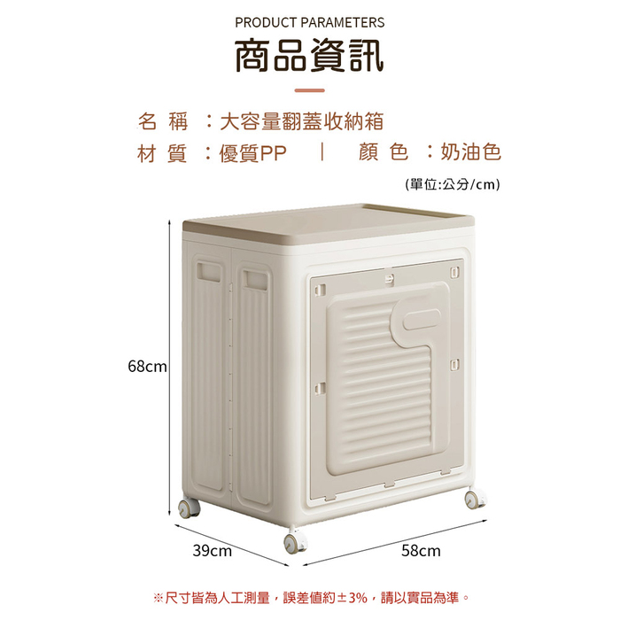 | 商品名稱 | 【AOTTO】130L大容量翻蓋附輪折疊收納箱(推車 收納箱 折疊箱 玩具收納) |