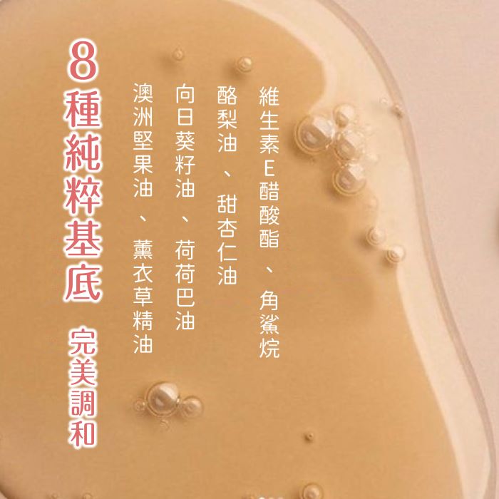 | 商品成分 | 澳洲堅果油、薰衣草精油、維生素E醋酸酯、角鯊烷、向日葵籽油、荷荷巴油、酪梨油、甜杏仁油 |
