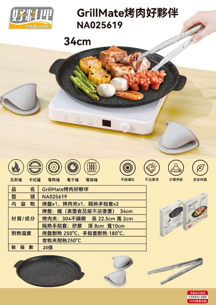 | 商品名稱 | 【好料理】GrillMate烤肉好夥伴組(烤盤x1,烤肉夾x1,隔熱手指套x2) |