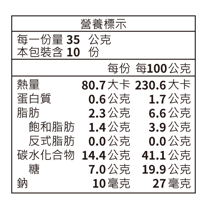 | 包裝內容/商品規格 | 10入,共350公克/包 |