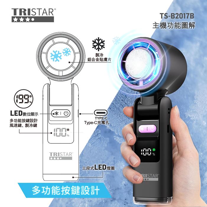【4入團購組】《TRISTAR》199檔折疊製冷手持風扇-2色可選