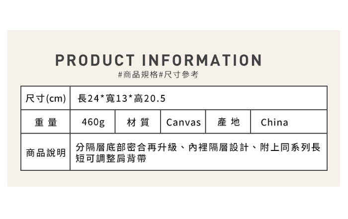 附上同系列長短可調整肩背帶
