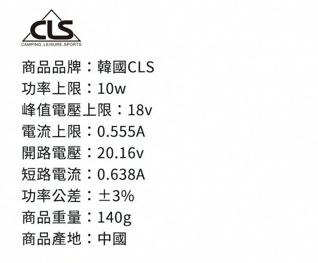 | 【商品名稱或型號】 | 【韓國CLS】戶外太陽能板 |