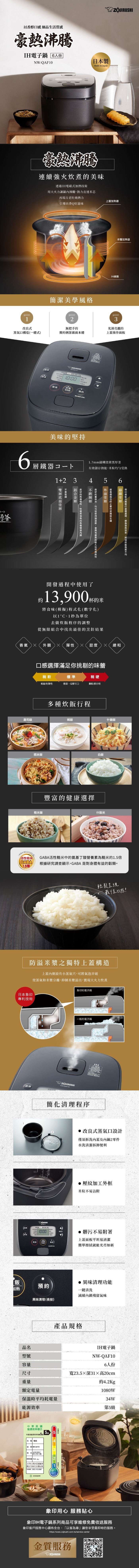 | 商品名稱 | ZOJIRUSHI象印 6人份IH電子鍋 NW-QAF10 |