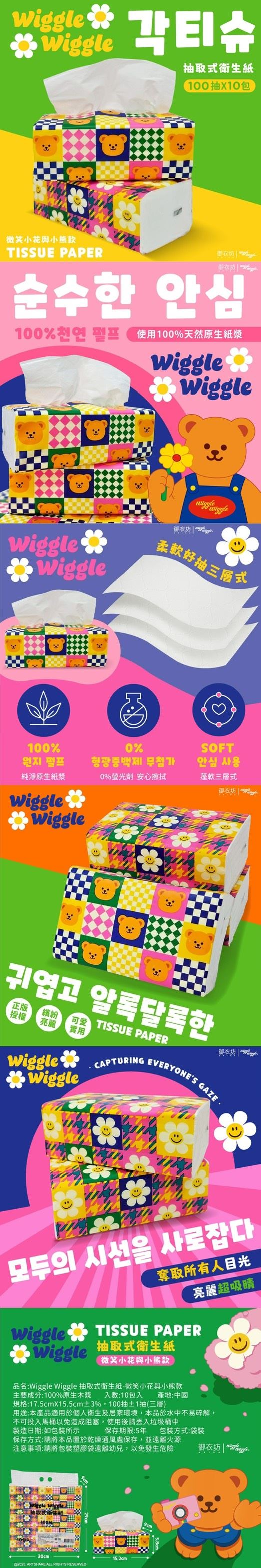 | 內容物 | WIGGLE WIGGLE抽取式衛生紙 (微笑小花與小熊款)-100抽*100包 |