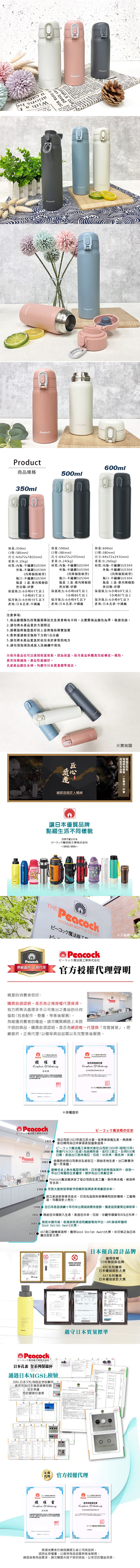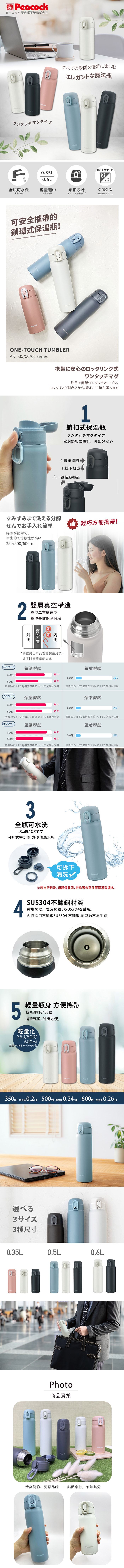 | 商品名稱 | 【日本孔雀Peacock】時尚休閒 鎖扣式彈蓋 不鏽鋼保溫杯600ML(直飲口設計)-任選色 |