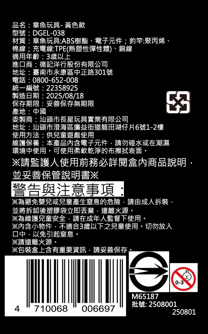 | 內容物 | 章魚玩具、釣竿、充電線 |