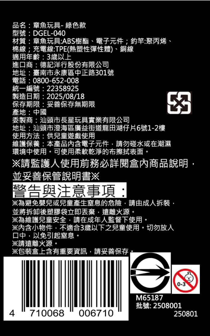| 內容物 | 章魚玩具、釣竿、充電線 |