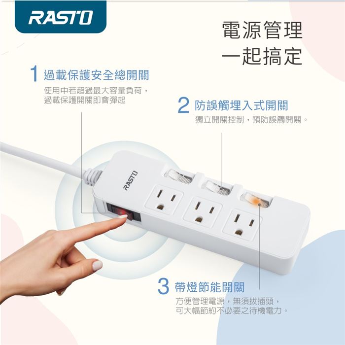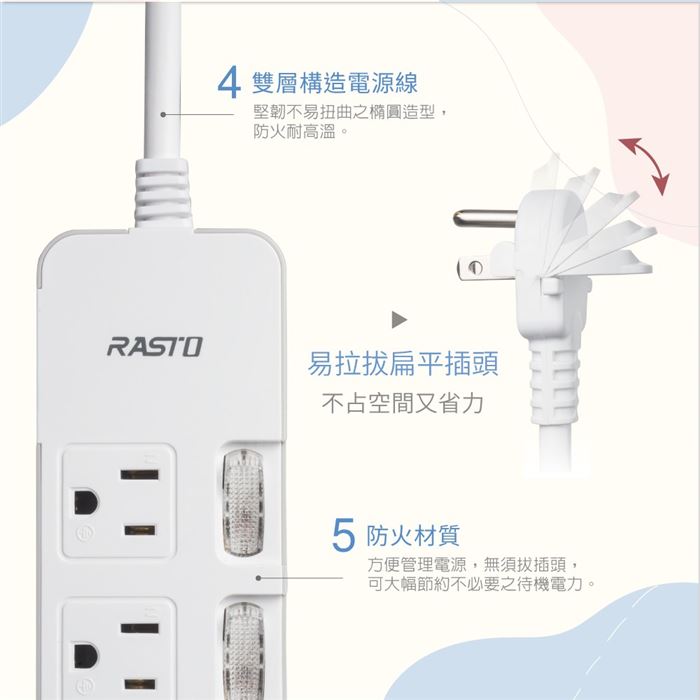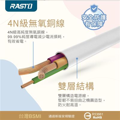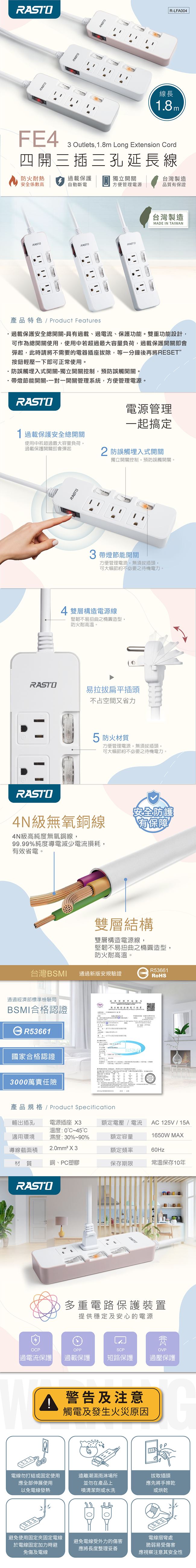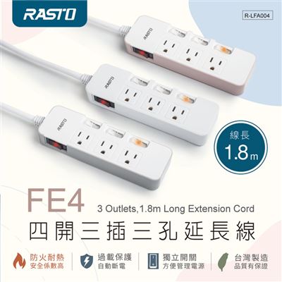 | 商品名稱 | RASTO FE4 四開三插三孔延長線 1.8M-白 |