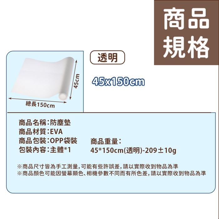 【買一送一】櫥櫃防塵墊45x150cm-透明