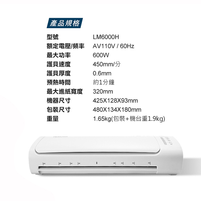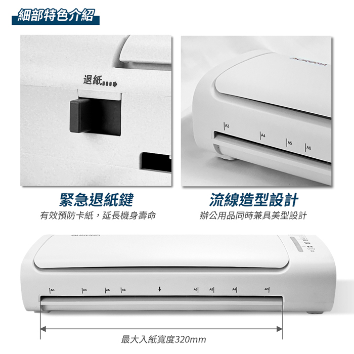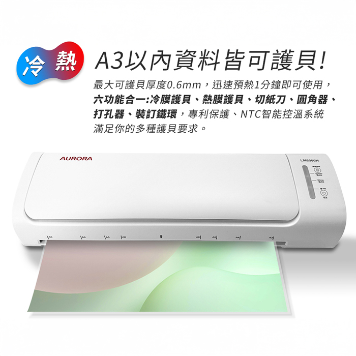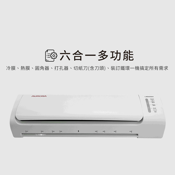 | 商品名稱 | AURORA震旦 A3六合一裁切收納多功能石英管冷熱雙溫護貝機 LM6000H |