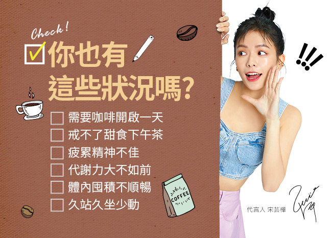 | 內容物 (完整成份/食品添加物) | 三合一咖啡粉(奶精、即溶咖啡粉、砂糖、香料)、菊糖、瑪黛茶萃取物(瑪黛茶萃取物、維生素C、檸檬酸)、綠咖啡萃取物、可可萃取粉(麥芽糊精、可可萃取物、大豆卵磷脂)、二氧化矽、牛乳蛋白粉 |