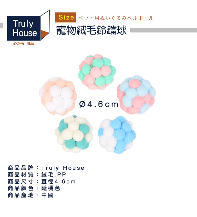 | 商品名稱 | 【Truly House】寵物絨毛鈴鐺球 超值三入組 (顏色隨機) |