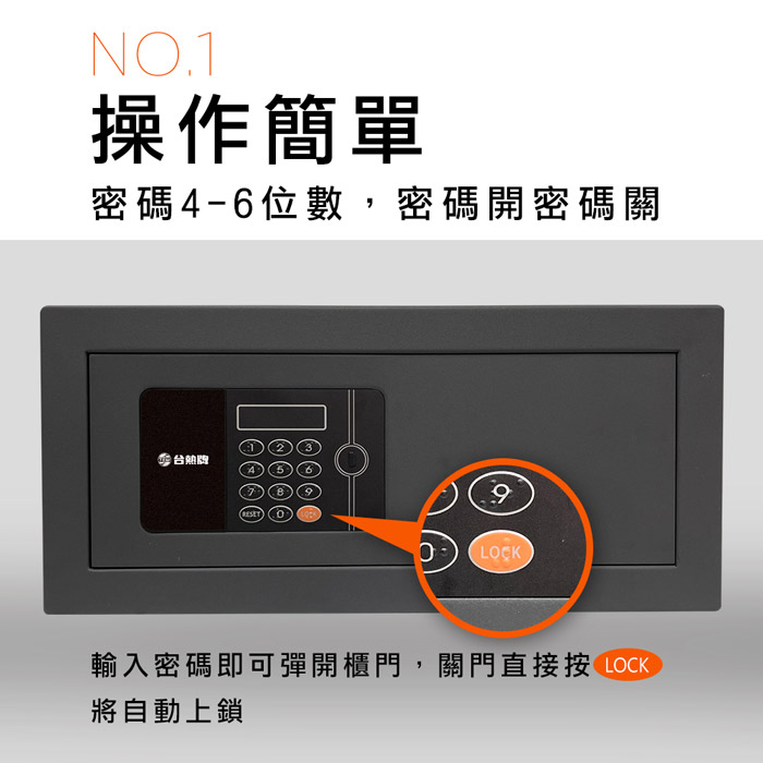 ◆自動馬達設計輸入密碼即可彈開櫃門,關門直接按LOCK將自動上鎖。