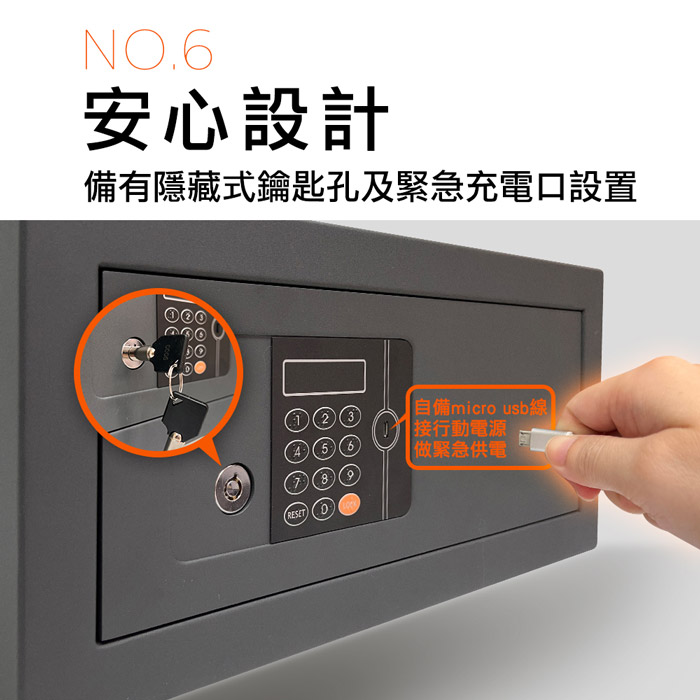 ◆備有隱藏式鑰匙孔及緊急充電口設置。