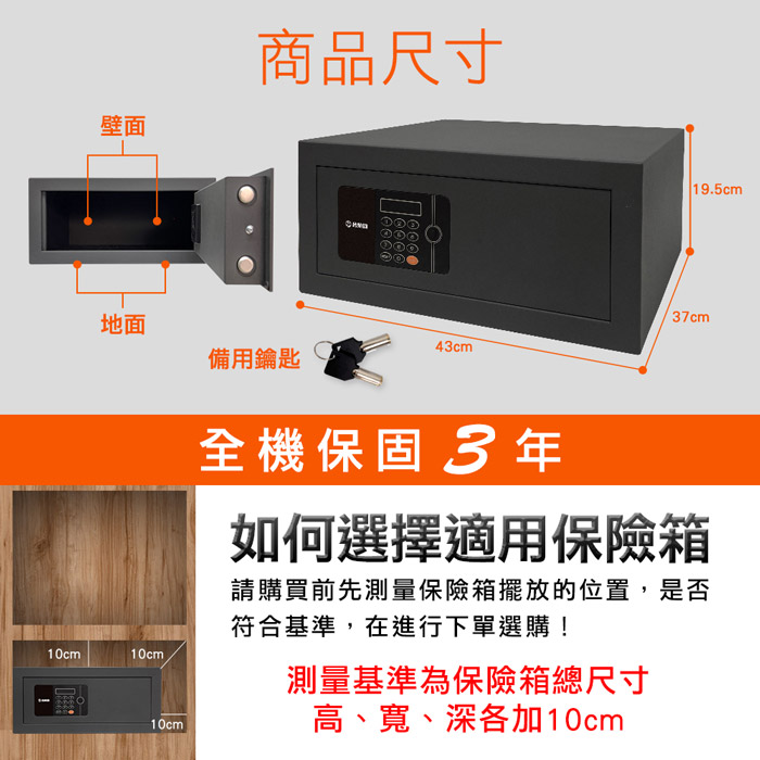 ◆商品:台熱牌 密碼/鑰匙智能數位電子保險箱/櫃(TES-195S)