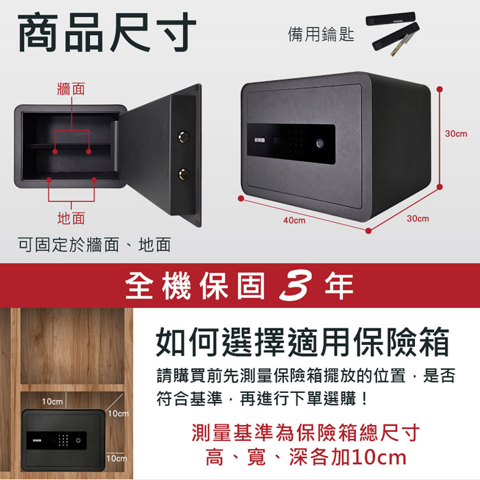 ◆商品:台熱牌 指紋/密碼/鑰匙智能數位電子保險箱/櫃(TES-30B)