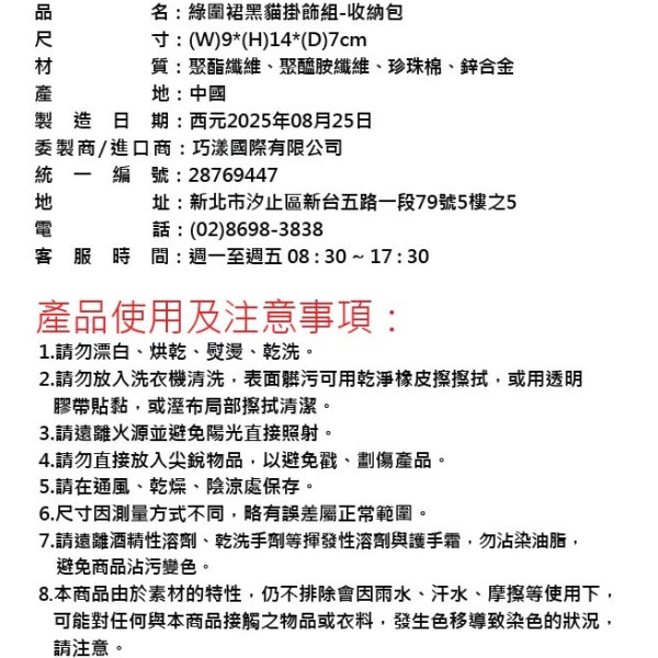 黑貓化身為穿著綠圍裙的barista,可作為掛飾或者放入收納包展示;