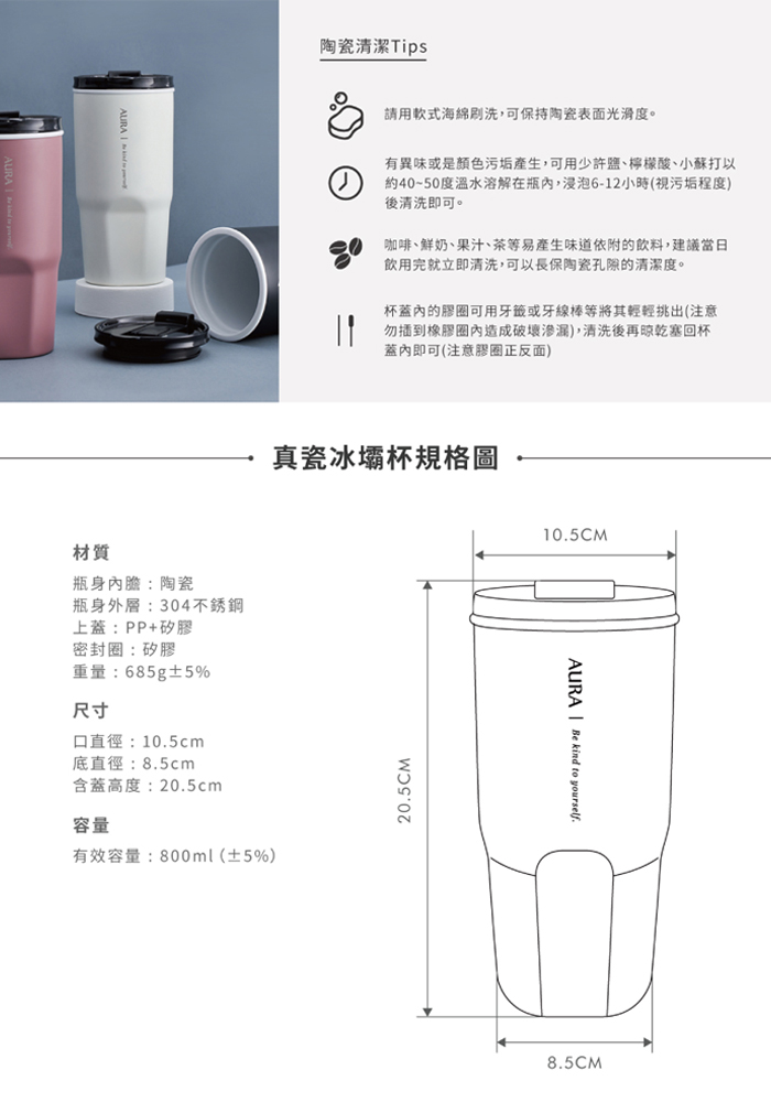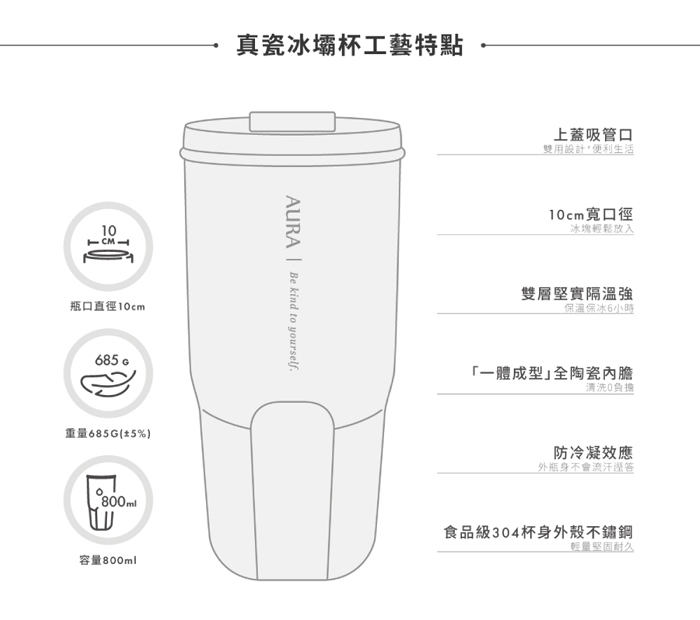 | 成分 | 杯身內膽:景德鎮高白瓷 杯身外殼:304不鏽鋼 蓋子:AS 吸管:矽膠 產地:台灣監製、中國製造 |