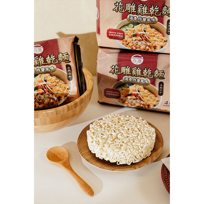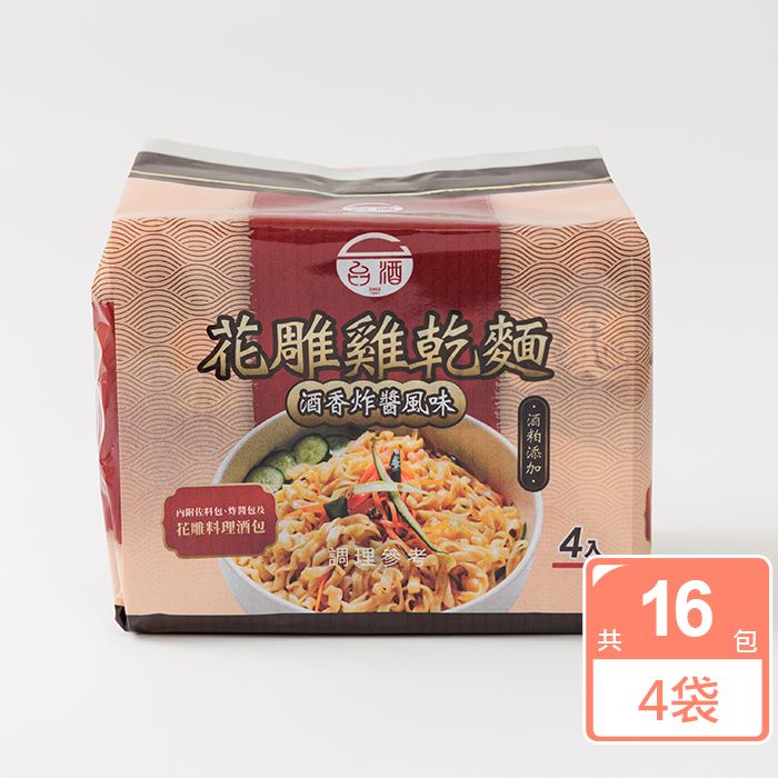 | 商品名稱 | 【搶先上市】台酒花雕雞乾麵-酒香炸醬風味4袋箱購(共16包,每袋4包) |