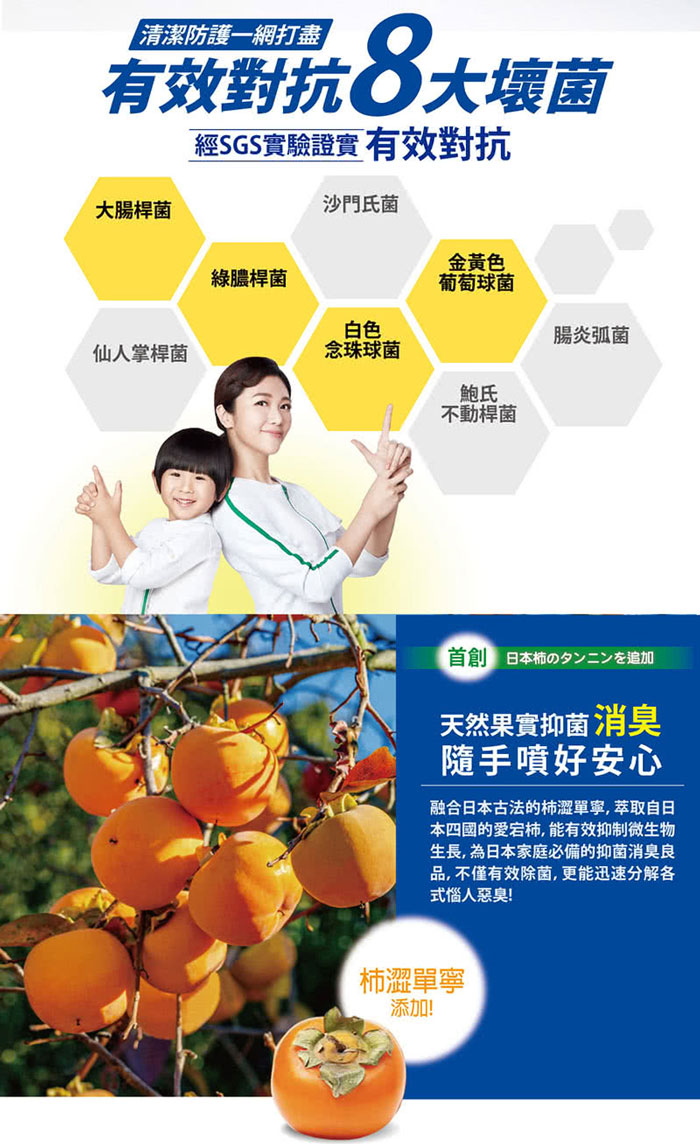 | 成分 | 水、日本AJ國際專利過敏原抑制劑、日本柿-柿澀單寧除臭因子 |