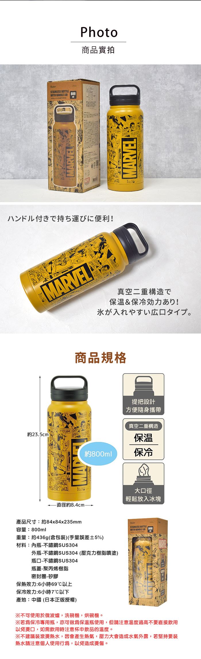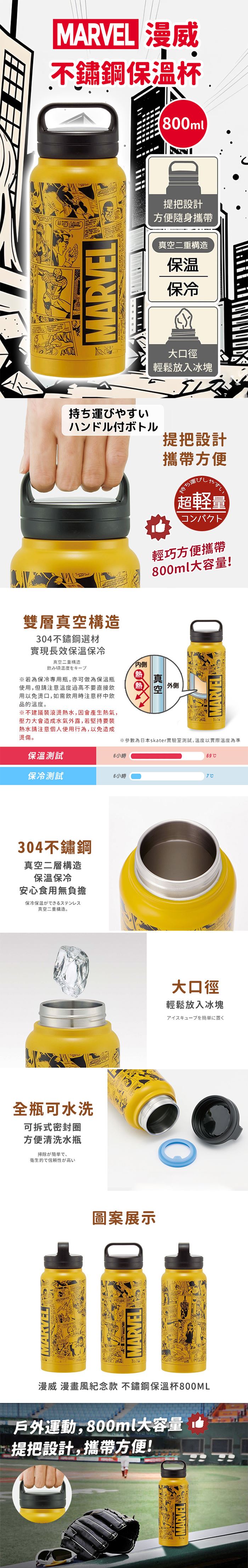 | 商品名稱 | 【百科良品】MARVEL 漫威 漫畫風紀念款 不鏽鋼保溫杯 隨身杯 800ML(提把設計)-黃 |