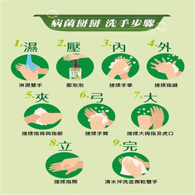 | 使用方法 | 請將手打溼,按壓出適量泡泡,清洗手部,再以清水沖淨 |