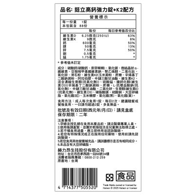 | 商品名稱 | 挺立高鈣強力錠 +K2配方 88錠 |