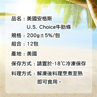 | 商品名稱 | 【築地一番鮮 】美國安格斯U.S. Choice牛肋條12包(200g/包) |