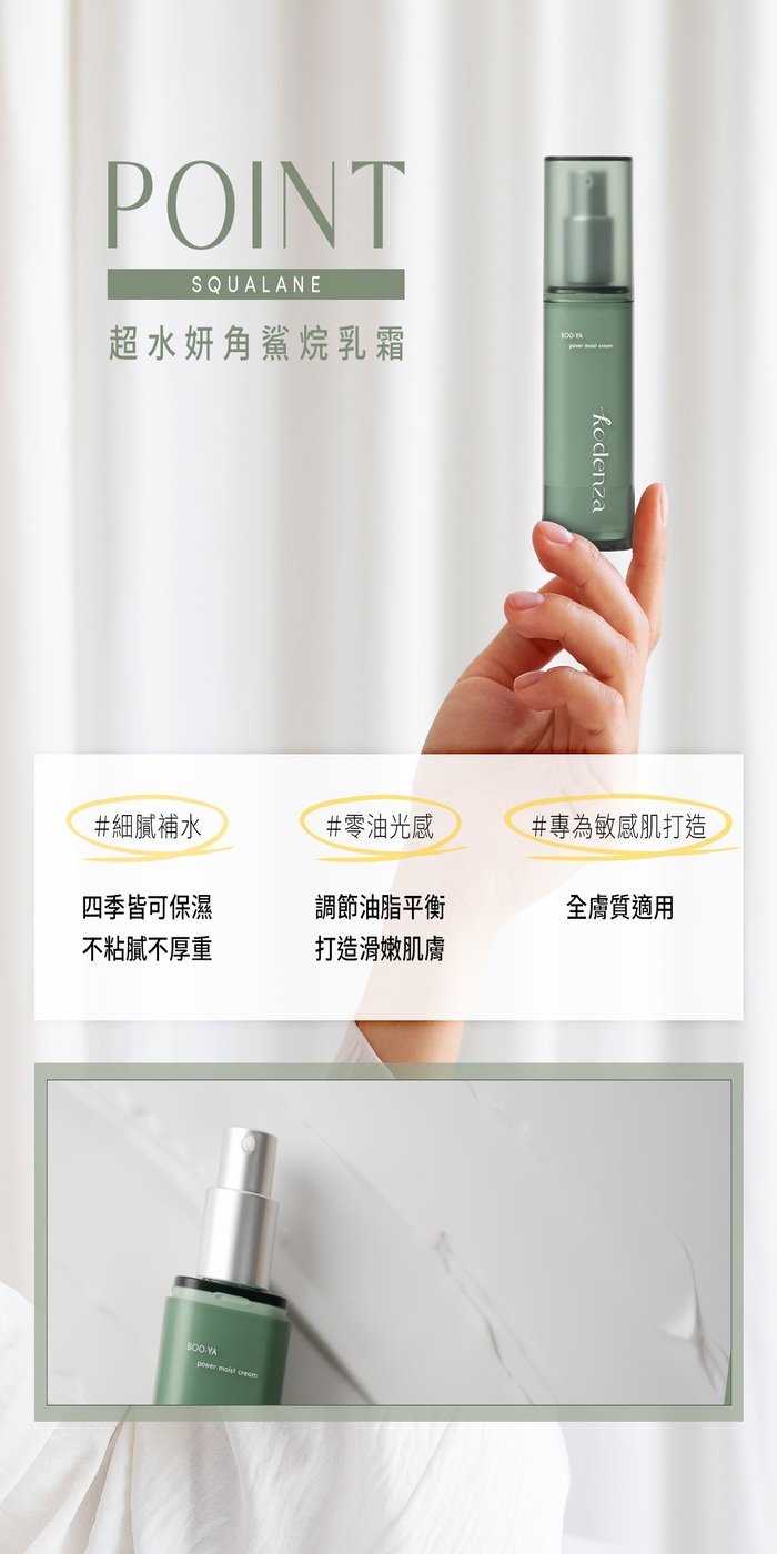 細緻補水、零油光感、9+1(9秒快速吸收、1滴完美保濕)