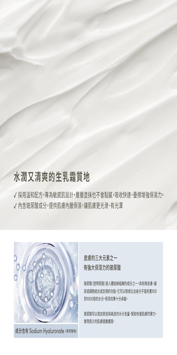 | 使用方法 | 於清潔後取適量均勻塗抹於臉部及頸部 |